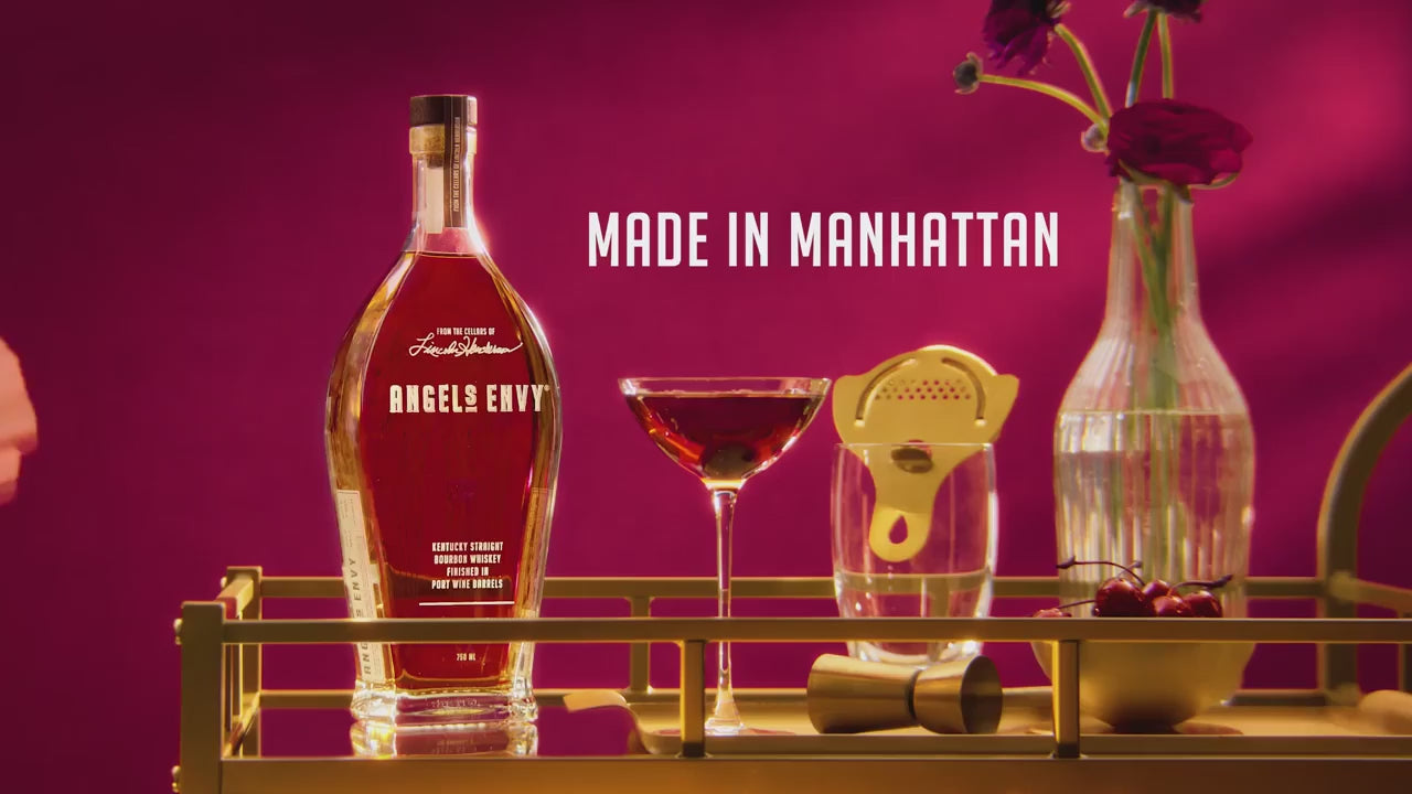 Angel's Envy Kentucky Straight Bourbon Whiskey is hand blended in batches of eight to 12 barrels at a time, finished in port wine barrels and unlike any bourbon you've ever tried. This Kentucky whiskey liquor features notes of subtle vanilla, raisins, maple syrup and toasted nuts that lead to flavors of vanilla, ripe fruit, and bitter chocolate followed by a clean finish with a hint of Madeira that slowly fades. Enjoy it neat in a bourbon glass, chilled, with just a splash of water or in alcohol drinks like an Old Fashioned. With Angel’s Envy, Heaven can wait. Please Drink Responsibly.