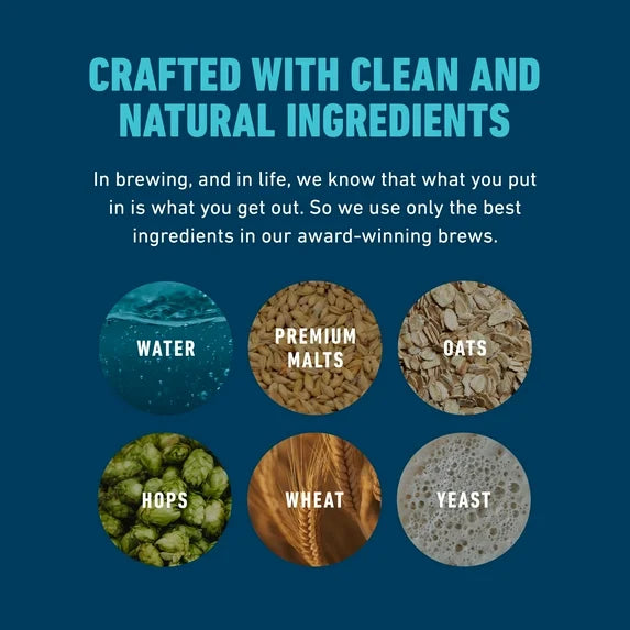 - Clean, Natural Ingredients: Whenever possible, we source pure, all-natural ingredients. Our brews are made with premium malts, wheat, water, hops, and yeast. Non-GMO and no fat
