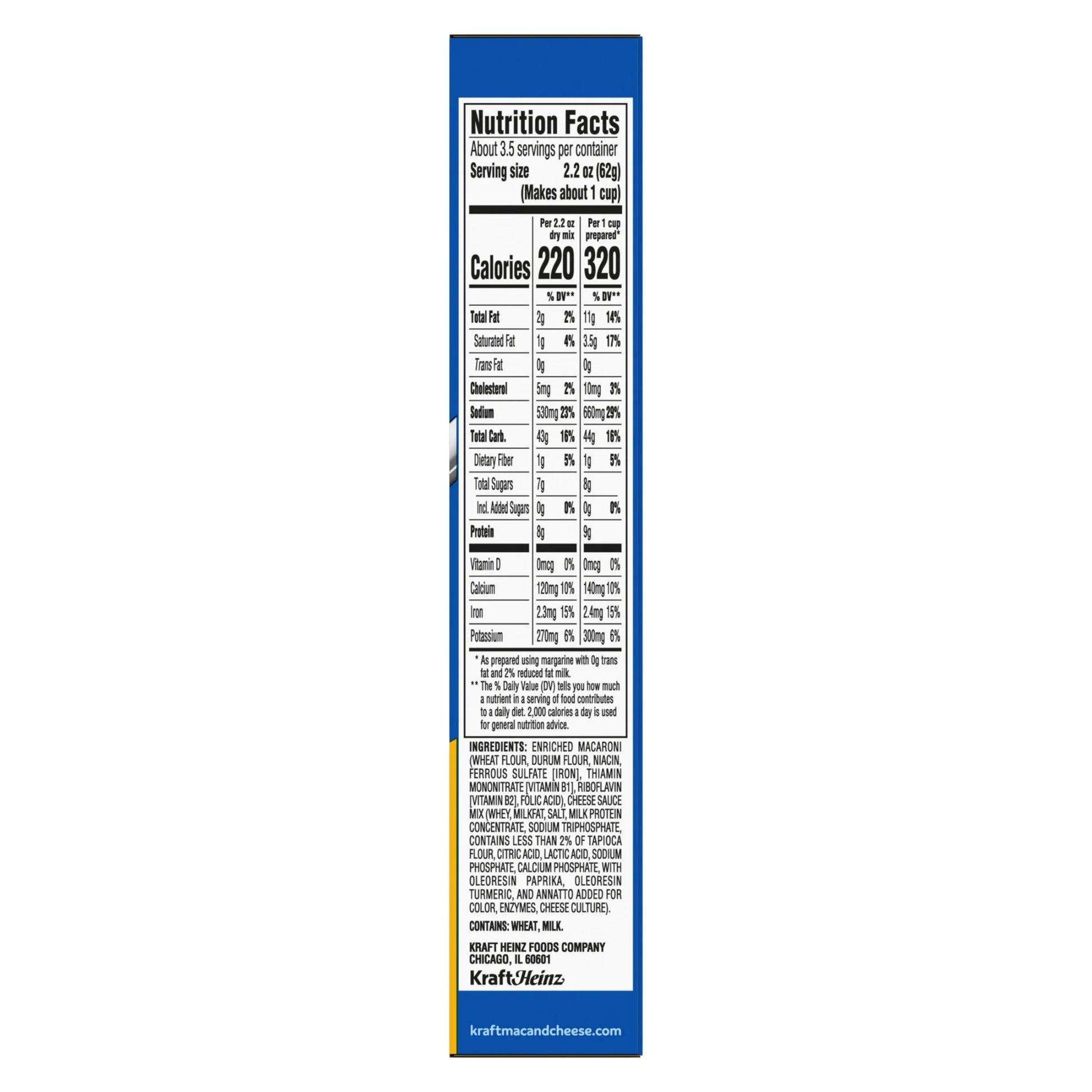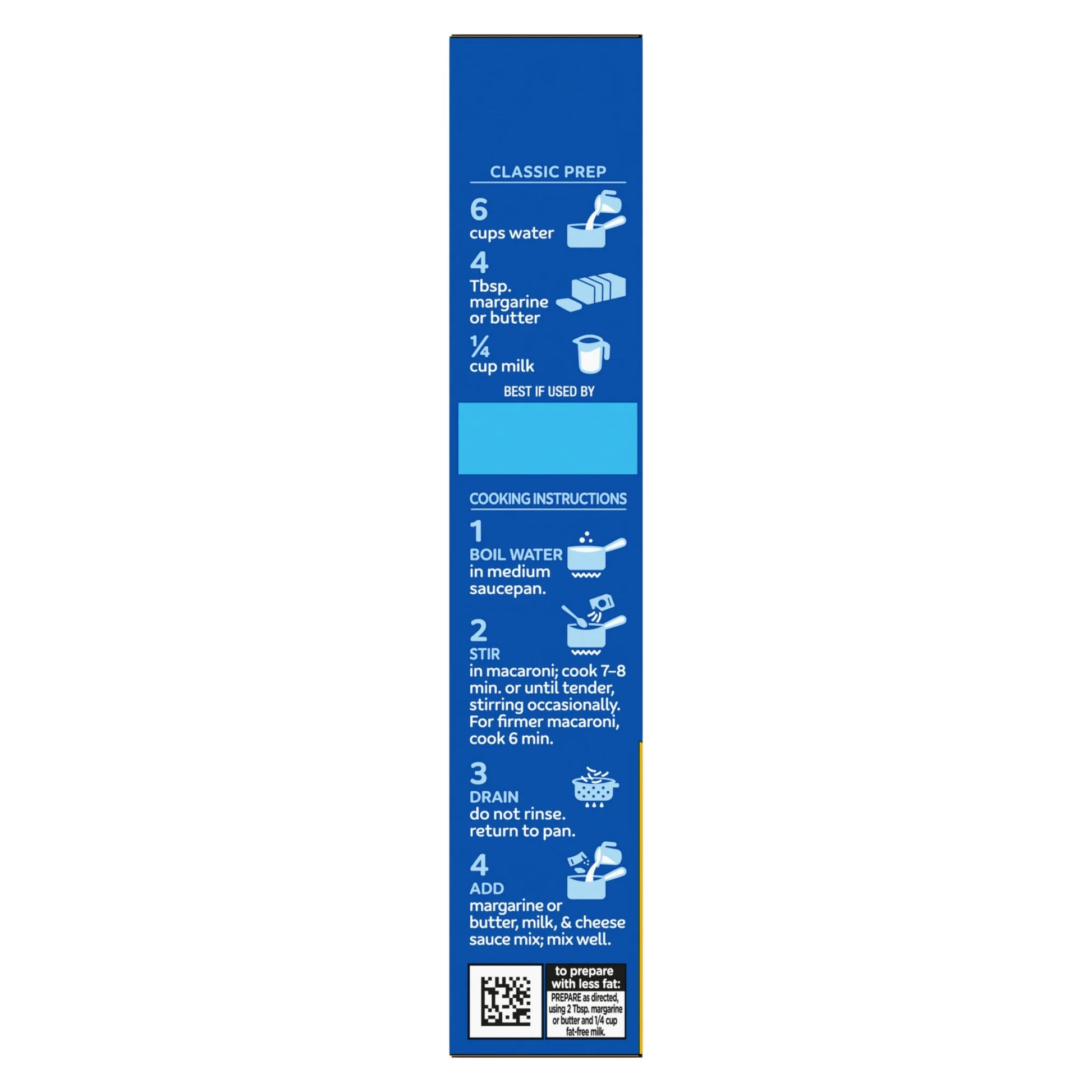 Help yourself to a bowl of comfort. Kraft Original Mac & Cheese Dinner is a convenient boxed dinner. Kids and adults love the delicious taste of macaroni with cheesy goodness. Our 7.25 ounce mac & cheese dinner includes macaroni pasta and original flavor cheese sauce mix, so you just need milk and margarine or butter to make a tasty mac and cheese dinner kids love. With no artificial flavors, preservatives or dyes, Kraft Mac & Cheese is always a great family dinner choice. Preparing macaroni and cheese is a breeze. Just boil the pasta for 7-8 minutes, drain the water and stir in the cheese mix, milk, and margarine or butter. Kraft Mac & Cheese inspires the positive power of comfort. Shelf-Stable and Fully Cooked.