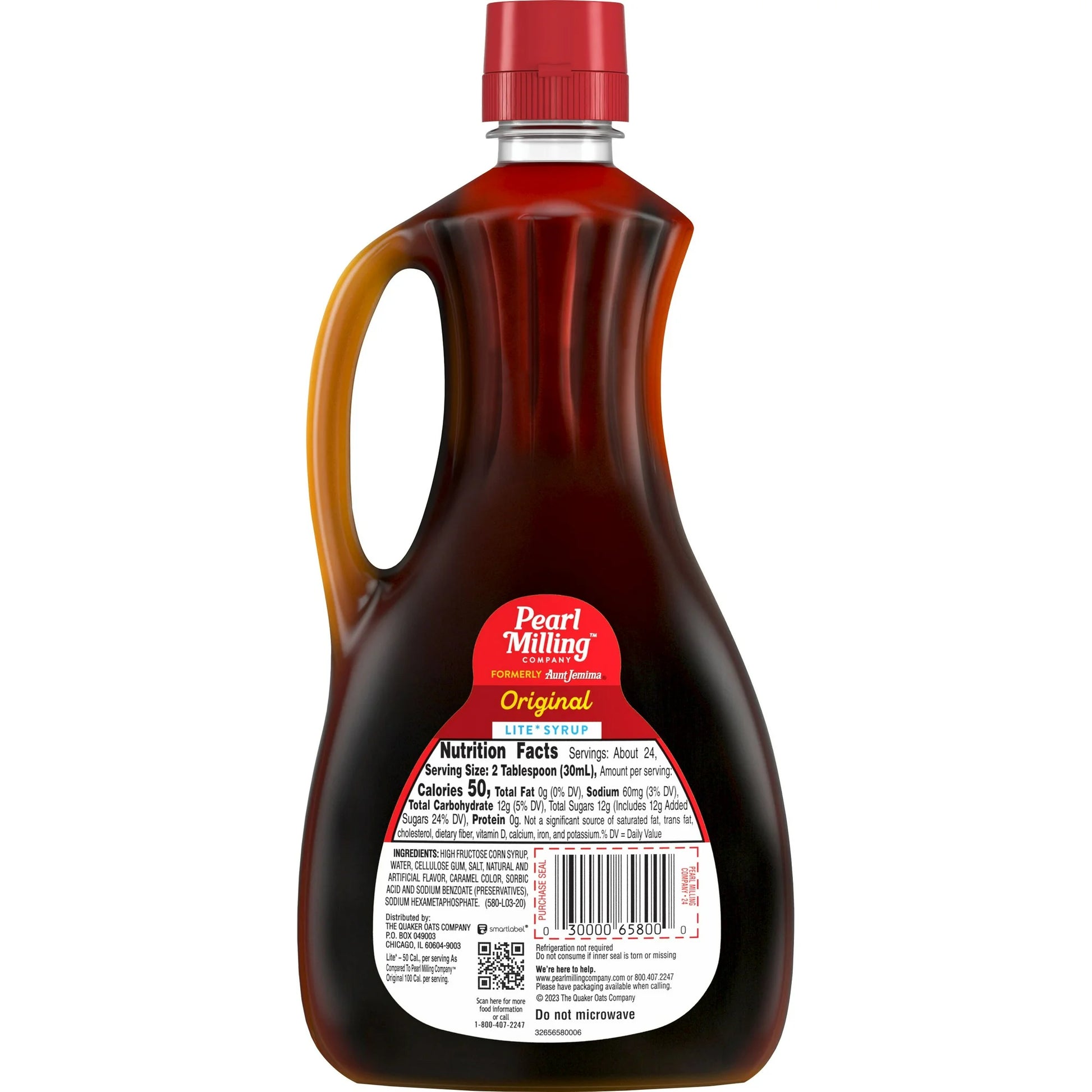 Pearl Milling Company Lite Pancake & Waffle Syrup Original, 24 fl oz Bottle, 24 Servings